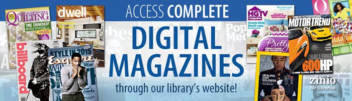 Access to over 50 magazines for free! To gain access to these magazines please click the following link: https://www.rbdigital.com/50emagazine/service/zinio/landing *You will need to create an account ; you may use the same email address and password if you have had a previous Zinio account* If you have questions or problems creating an account please contact the library at 606-256-2388. Magazines Available Include: AFAR American Patchwork & Quilting Ask En Espanol Babybug en espanol Better Homes and Gardens Bloomberg Businessweek Clean Eating Cloth Paper Scissors Cosmopolitan Country Living Cricket ESPN The Magazine Esquire Every Day with Rachael Ray Family Circle Family Handyman Food Network Magazine Forbes Glamour Golf Digest Good Housekeeping HGTV Magazine Highlights for Children Iguana : para jovenes lectores en espanol Kiplinger's Personal Finance Ladybug en espanol Macworld Marie Clair Martha Stewart Living Men's Health mental_floss National Geographic Interactive National Geographic Traveler Interactive Newsweek O, The Oprah Magazine OK! Magazine PCWorld Popular Mechanics Popular Science Prevention Reader's Digest Redbook Seventeen Shape Smithsonian Magazine Star Magazine Taste of Home Vanidades USA Vanity Fair Vegetarian Times Vogue WIRED Woman's Day Women's Health Woodworker's Journal Yoga Journal